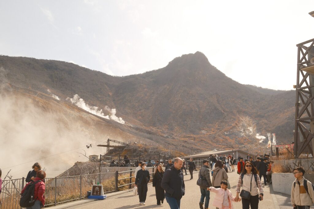 • 観光地が空いている: 月曜の大涌谷は土日と比べて人がかなり少ない