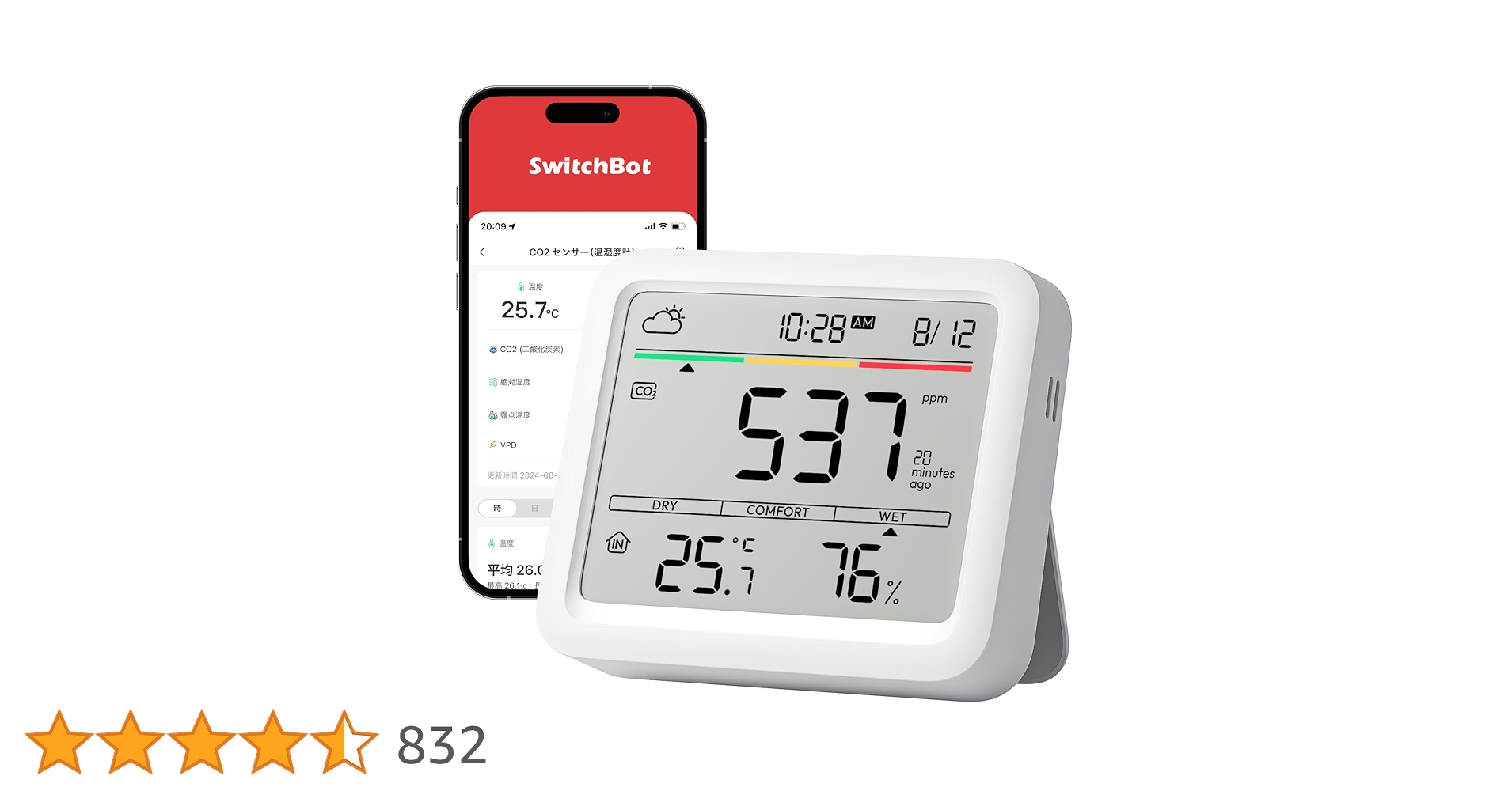 SwitchBot CO2センサーは、CO2濃度の「見える化」だけでなく、視認性の向上、電池駆動での実用性、スマホ通知による換気タイミングの把握など、従来の温湿度計から大きく進化した製品です。